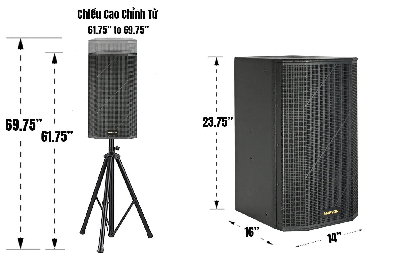 | Kích thước Loa (Mỗi chiếc) | 14" (Rộng) x 23.75" (Cao) x 16" (Sâu) |